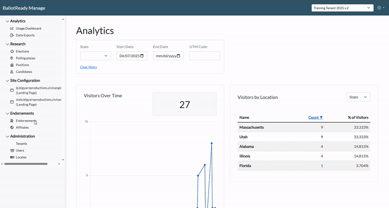- If you've already uploaded endorsements, you’ll see a list of endorsements that are currently live on your tool. From this page, you can view your existing endorsements, delete endorsements, filter endorsements, or select to add new endorsements.