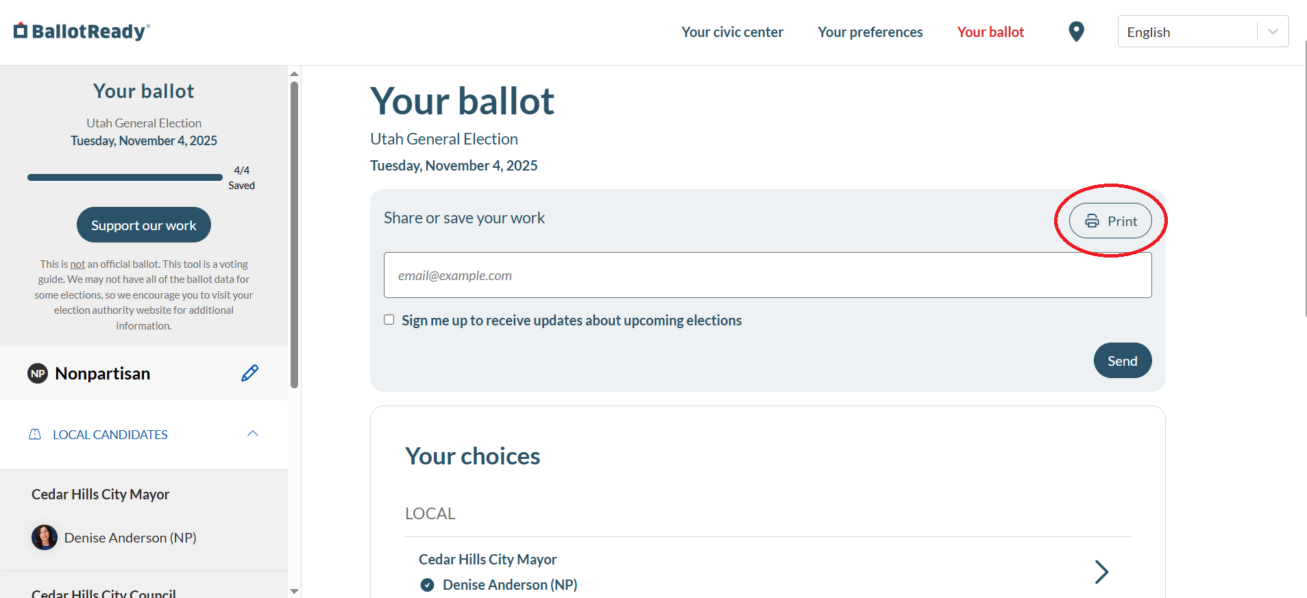 Printing and Emailing with BallotReady
