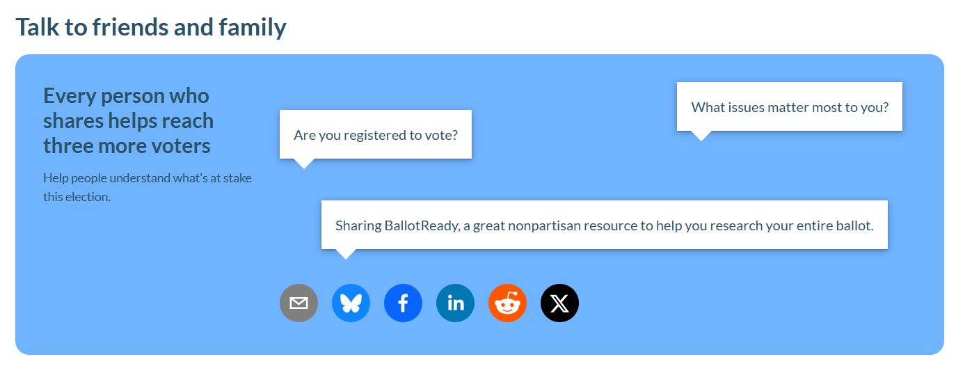 - You can copy and paste the website's link into any social media post and tag BallotReady!